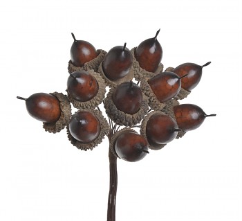 Svazek umělých žaludů využijete především pro podzimní dekorování. Žaludy jsou vyrobené z plastu, ale nerozeznáte je od živých. Jsou nádherně zpracované a věrohodně vybarvené. Čepičky žaludů jsou pravé, přírodní. Samotný žalud je vybarvený do hnědých odstínů. Svazeček je tvořen celkem 12 ks žaludů, každý je připevněná k ohebnému drátku. Svazek můžete používat v celku nebo jej rozdělit na jednotlivé žaludy a ty použít k dalšímu dekorování. Pomocí tavné pistole je připevníte k věnci nebo je jednoduše omotejte, kam jen budete chtít.